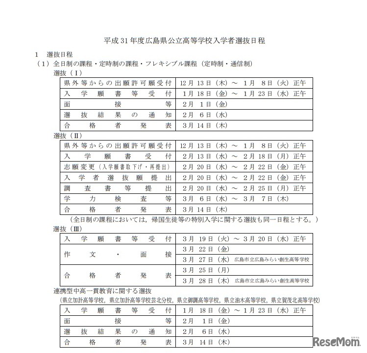 【高校受験2019】広島県公立高入試、入学者選抜実施要項を公表 2枚目の写真・画像