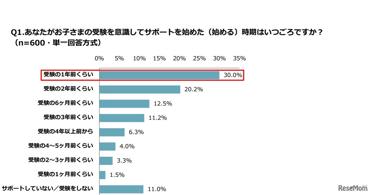 子どもの受験を意識してサポートを始めた(始める)時期はいつごろか