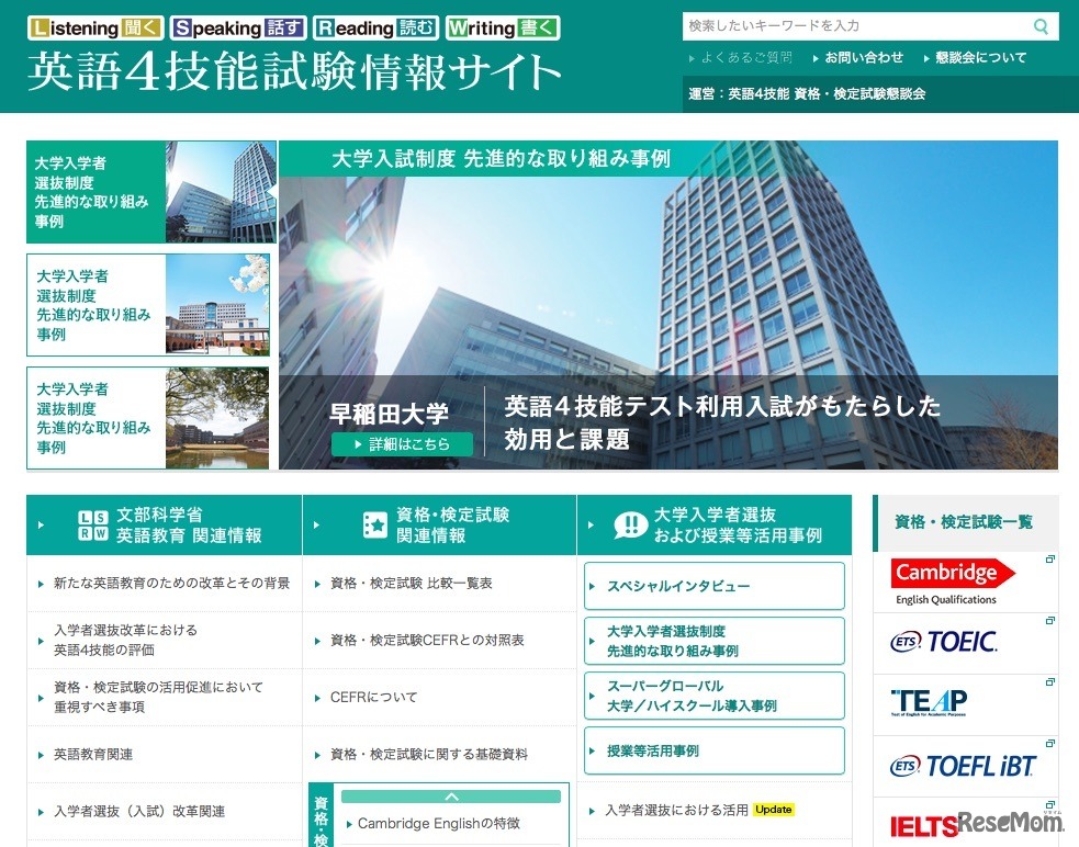 英語資格・検定試験実施主体による「英語4技能試験情報サイト」は2018年12月13日、「大学入試英語成績提供システム」に参加予定の資格・検定試験の概要の一覧表を公開した。大学入試センターが参考情報として紹介している。