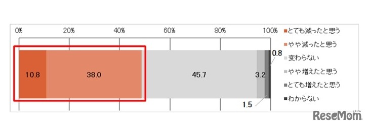 画像出典:「ベルメゾン ホットコット」調べ 子どもの成長に伴ってスキンシップが減っていると感じるか