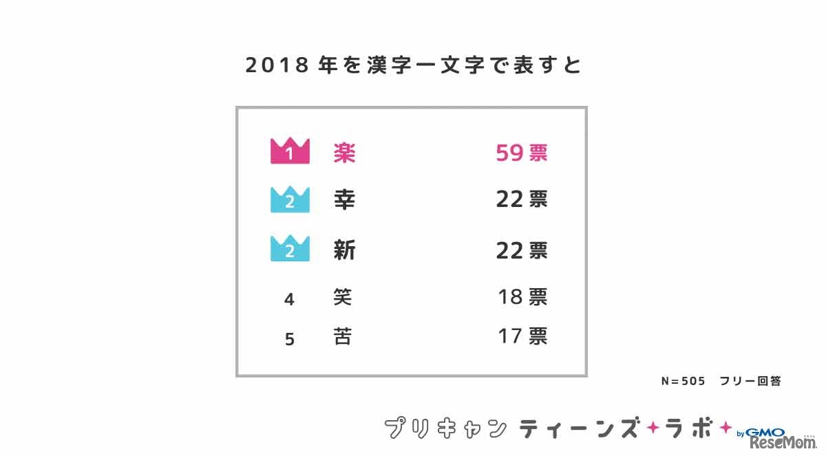 画像提供:プリキャンティーンズラボ byGMO 2018年を漢字一文字で表すと