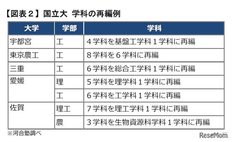 国立大 学科の再編例