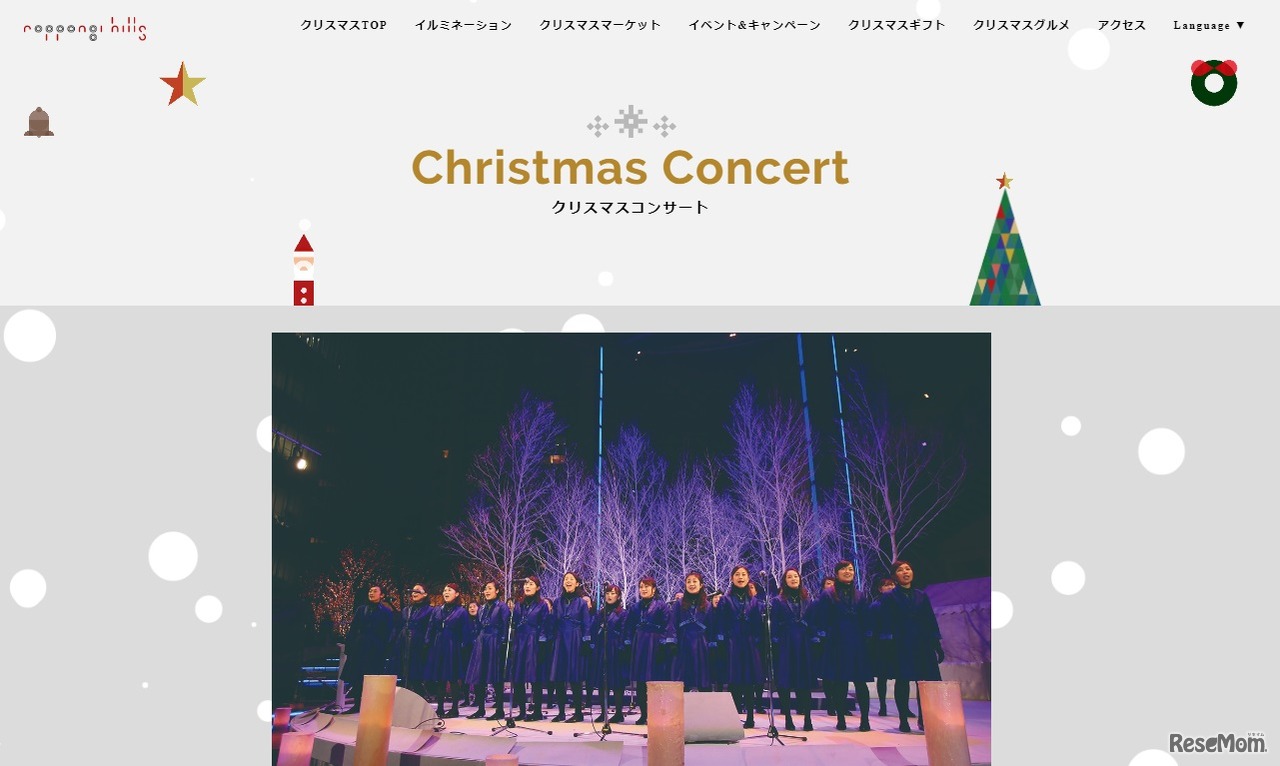 六本木ヒルズでは、2018年12月22日から24日まで屋外会場にてクリスマスコンサートを開催する。クリスマスの聖歌やクラシックからポップスまでさまざまなアーティストのコンサートを楽しめる。