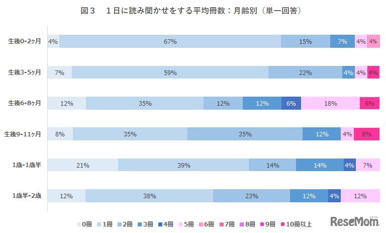 コズレ子育てマーケティング研究所は2018年12月19日、「絵本の読み聞かせに関する調査」の結果を公表した。読み聞かせを始めた月齢は「生後3~5か月」が半数以上を占め、読み聞かせをするタイミングは「昼」と「就寝前」が多かった。