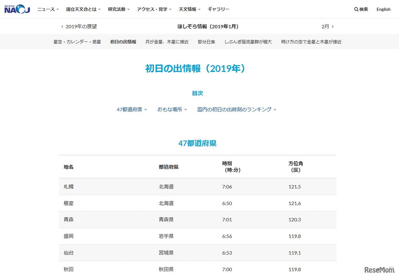 年末年始を前に国立天文台やアストロアーツなどは、2019年の「初日の出」の情報をWebサイトに掲載している。お勧めスポットや晴れ出現率などを紹介するサービスもあり、新年の始まりを告げる「初日の出」を眺めたり、撮影したりするため、事前準備に役立ちそうだ。