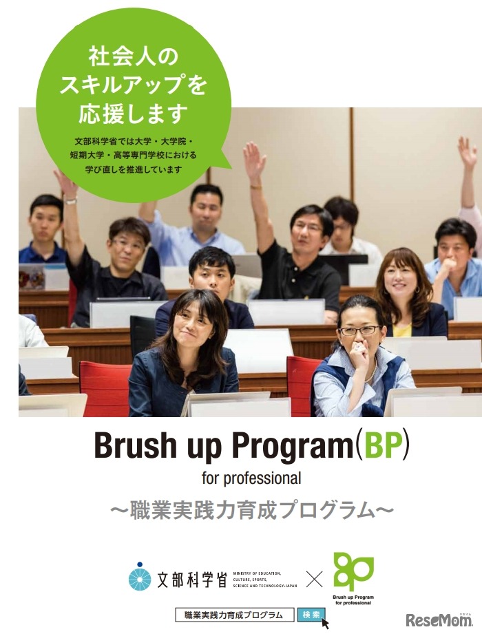 文部科学省は2018年12月20日、平成30年度(2018年度)「職業実践力育成プログラム」(BP)として、東北大学や大阪大学、早稲田大学などの32課程を認定した。大学などで社会人の学び直しを推進する。