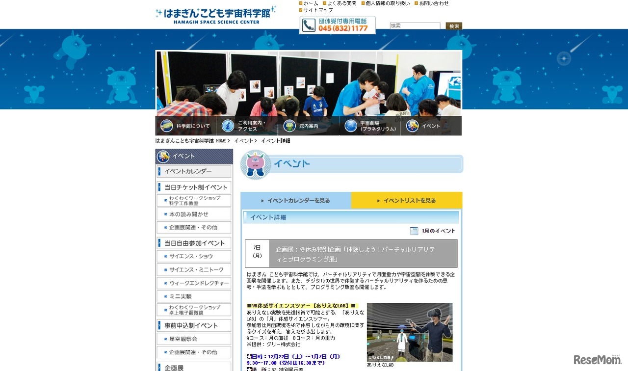 はまぎん こども宇宙科学館は2018年12月22日から2019年1月7日まで、企画展「体験しよう!バーチャルリアリティとプログラミング展」を開催する。バーチャルリアリティ(VR)で月面重力や宇宙空間を体験できるほか、プログラミング教室も実施する。
