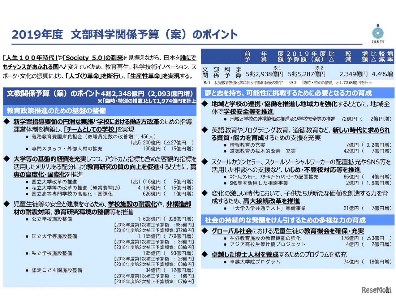 文科省の19年度予算案、前年度比2,349億円増の5兆5,287億円 2枚目の写真・画像