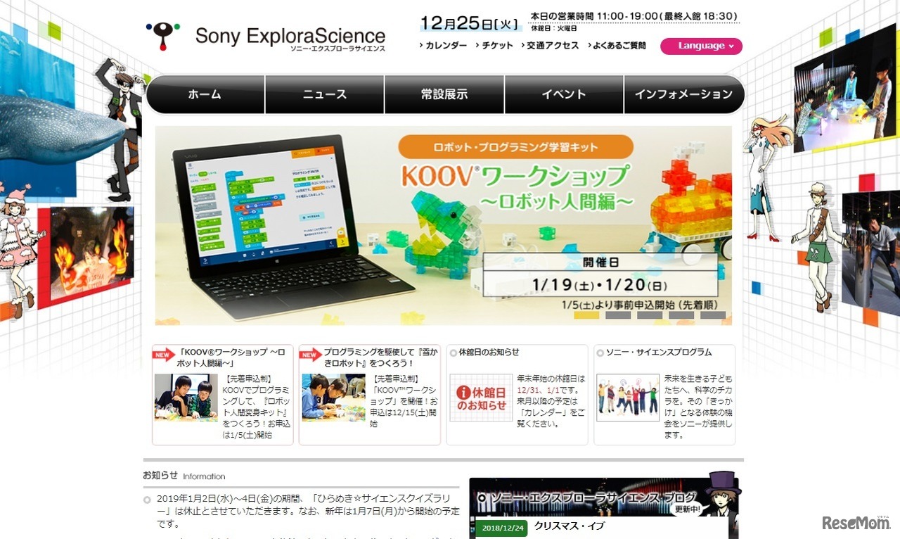 ソニーの体験型科学館「ソニー・エクスプローラサイエンス」は2019年1月19日と20日の2日間、玩具としても教材としても楽しめるロボット・プログラミング学習キット「KOOV」(クーブ)のワークショップを開催する。