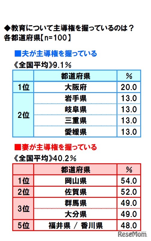 画像出典:ソニー生命保険 「教育の主導権について」都道府県ランキング