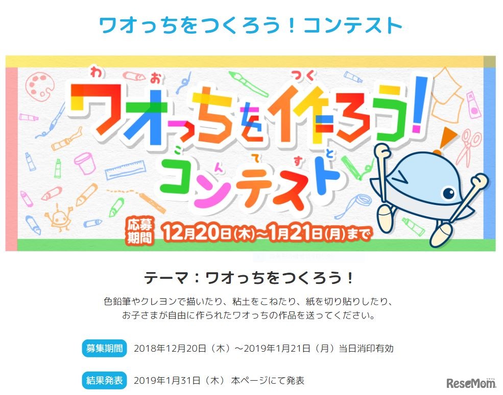 ワオ・コーポレーションが開発・配信する、子ども向け知育アプリ「ワオっち!」シリーズが、Webサイト「ワオっち!キッズサイト」を2018年12月20日よりオープンした。同時に「ワオっちを作ろう!コンテスト」を実施し、作品を2019年1月21日まで募集する。