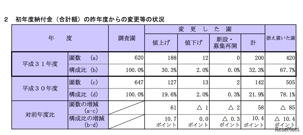 東京都は2018年12月25日、都内所在の私立幼稚園の「平成31年度(2019年度)入園児納付金」の調査結果を公表した。初年度納付金(合計額)の平均は、前年度より8,367円増の49万2,866円。最高額は青山学院の150万5,000円だった。