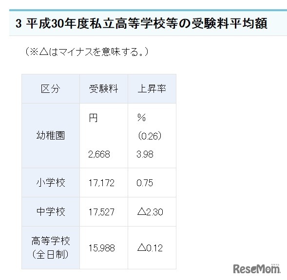 画像出典:文部科学省 平成30年度私立高等学校などの受験料平均額