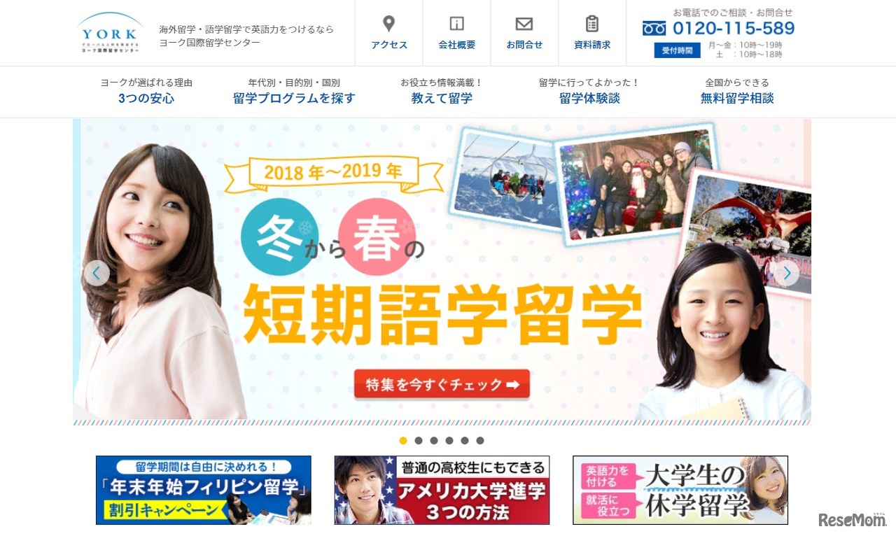 ヨーク国際留学センターは2019年1月19日、「アメリカのコミュニティカレッジの魅力」セミナーを開催する。現在サンタモニカカレッジに通学している現役留学生が自身の体験を踏まえて話す。希望者には、セミナー終了後に個別相談も実施する。参加無料。