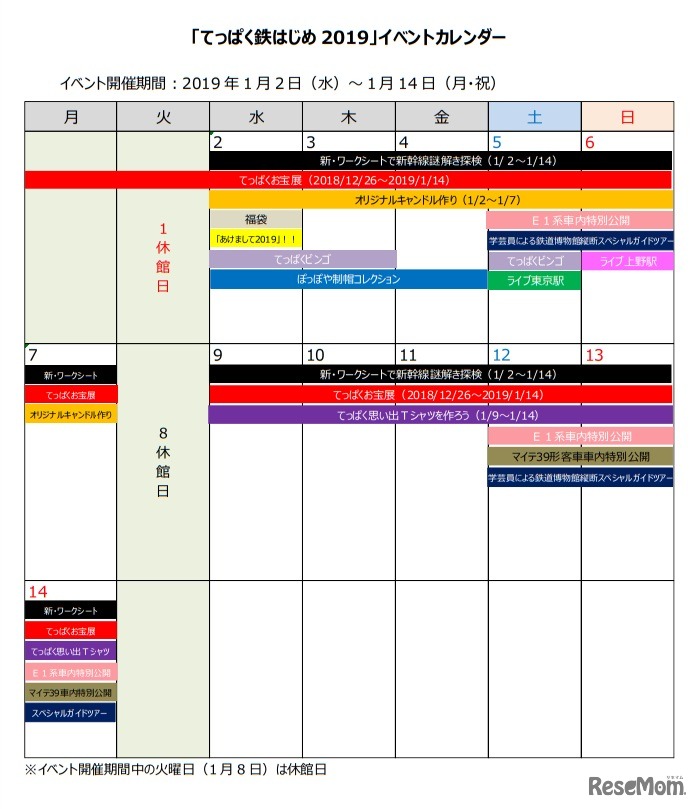 「てっぱく鉄はじめ2019」イベントカレンダー