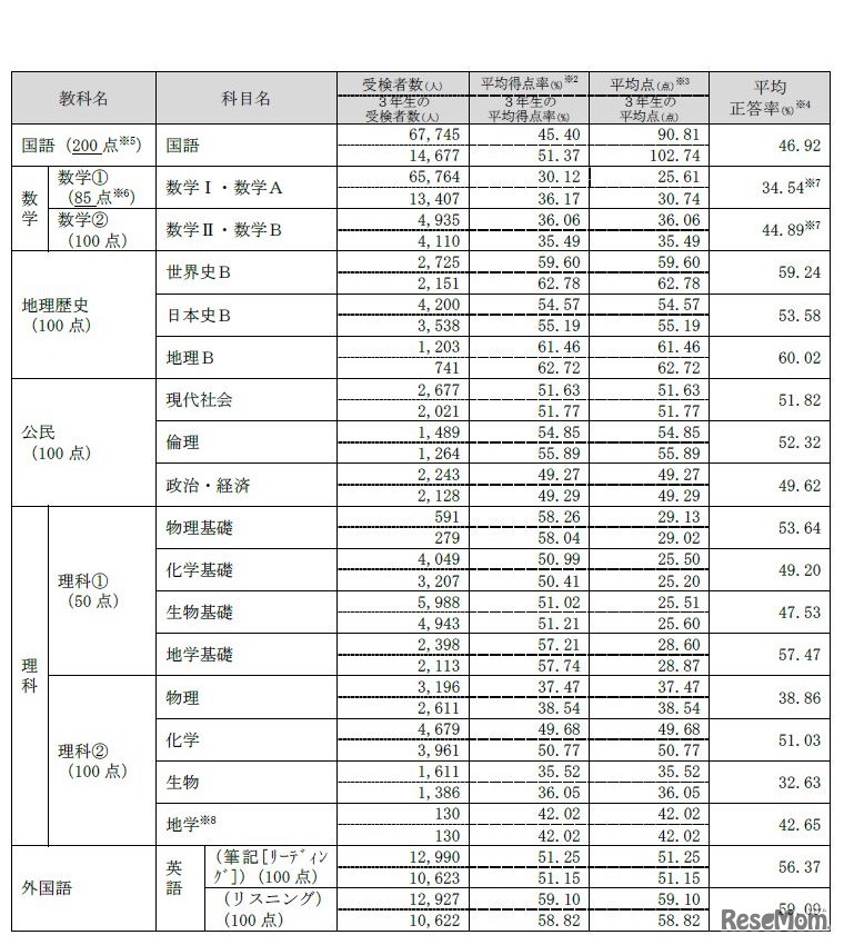 大学入試センターは2018年12月27日、大学入学共通テスト導入に向けて11月に実施した「試行調査(プレテスト)マーク式問題に関する実施状況」の速報結果を公表した。平均得点率は各科目5割程度を想定して実施されたが、5割程度以上は全19科目のうち14科目であった。