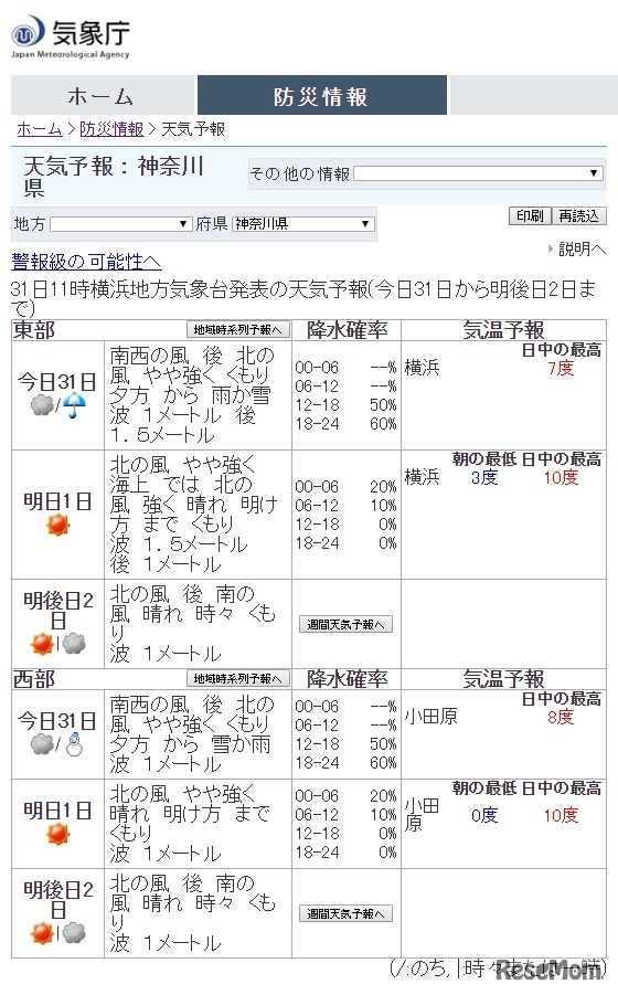 東京と神奈川の私立中学入試が2月1日より始まる。気象庁の天気予報によると、東京都と神奈川県の2月1日の天気は「晴れ」。前日の1月31日は夜に雪が降る見込みで、路面の状況に注意が必要だ。