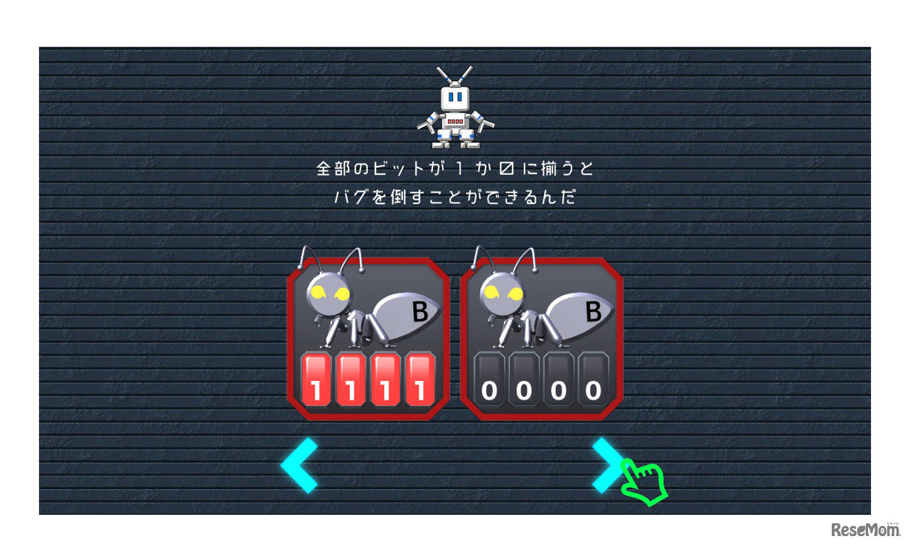 パネルを組み合わせて、バグの数字をすべて「0,0,0,0」か「1,1,1,1」に変える