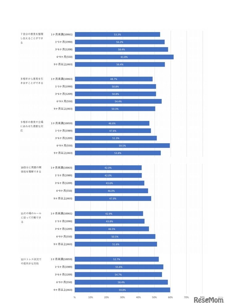 画像出典:文部科学省「日本人の海外留学の効果測定に関する調査研究」成果報告書 渡航期間と能力の伸長度