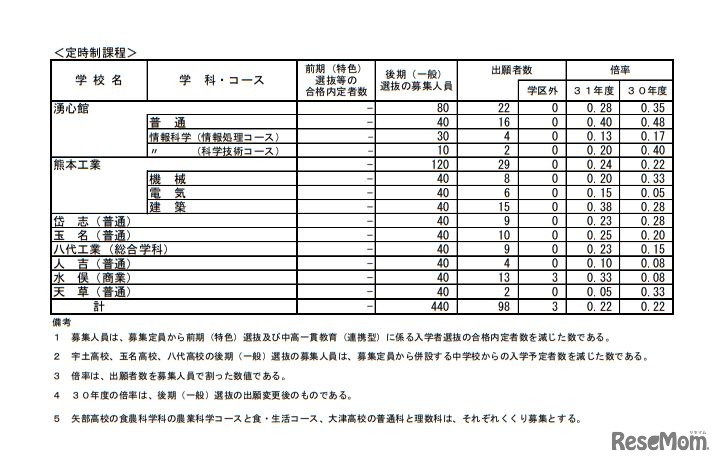【高校受験2019】熊本県公立高入試、後期(一般)選抜の出願状況・倍率(2/18時点)熊本(普通)1.53倍など 6枚目の写真・画像