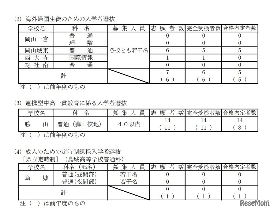岡山県教育委員会は2019年2月21日、2019年度岡山県公立高校特別入学者選抜等合格内定者数および一般入学者選抜(第I期)募集人員について発表した。全日制課程合計の募集定員1万1,500人に対し、特別入学等合格内定者数は3,657人。一般入学者選抜では、7,843人を募集する。