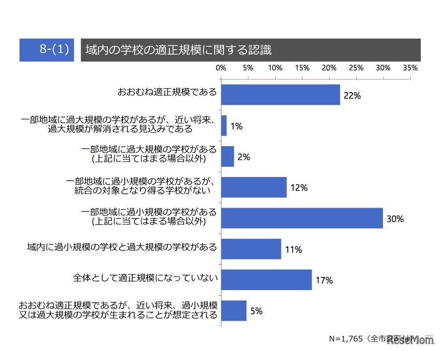 画像出典:文部科学省「平成30年度 学校規模の適正化及び少子化に対応した学校教育の充実策に関する実態調査について」 域内の学校の適正規模に関する認識(市区町村調査)