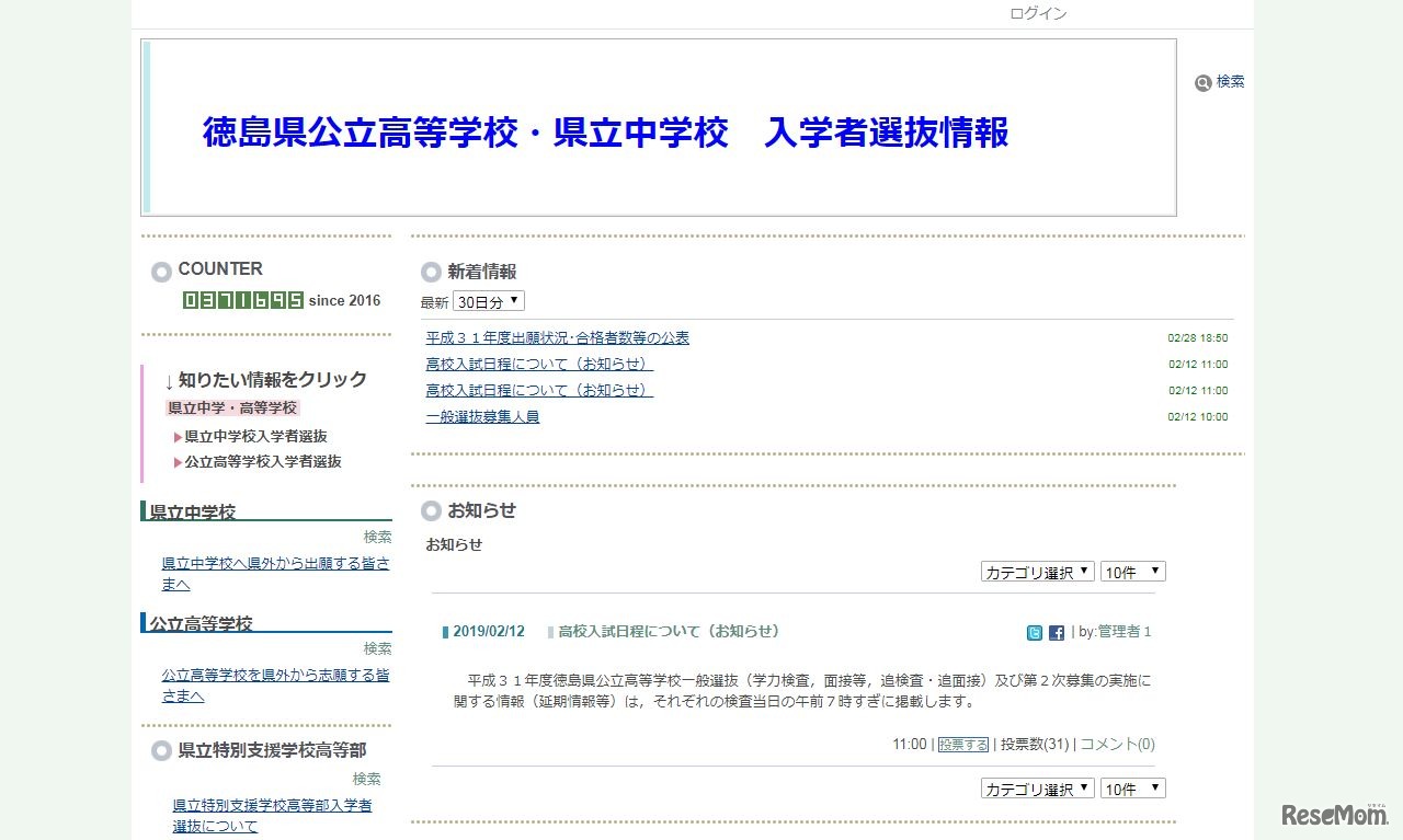 徳島県教育委員会は2019年2月28日、2019年度徳島県公立高等学校一般選抜の出願状況・倍率(確定)を公表した。全日制の課程は、一般選抜募集人員4,635人に対し4,733人が志願し、志願倍率は1.02倍。