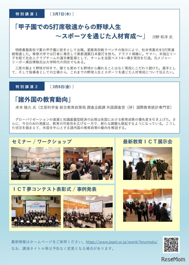 日本教育情報化振興会は2019年3月7日と8日、2018年度「教育の情報化推進フォーラム」を開催する。テーマは「新学習指導要領全面実施に向けて」。参加無料。申込みは、Webサイトにて3月4日まで受け付けている。