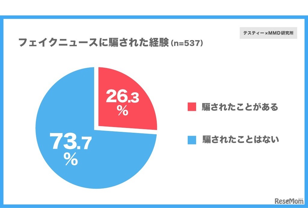 スマートフォンを所有する中高生のうち26.3%はフェイクニュースに騙されたことがあり、さらにそのうち61.0%はフェイクニュースを拡散してしまった経験があることが、MMD研究所とTesTee(テスティー)の共同調査から明らかになった。