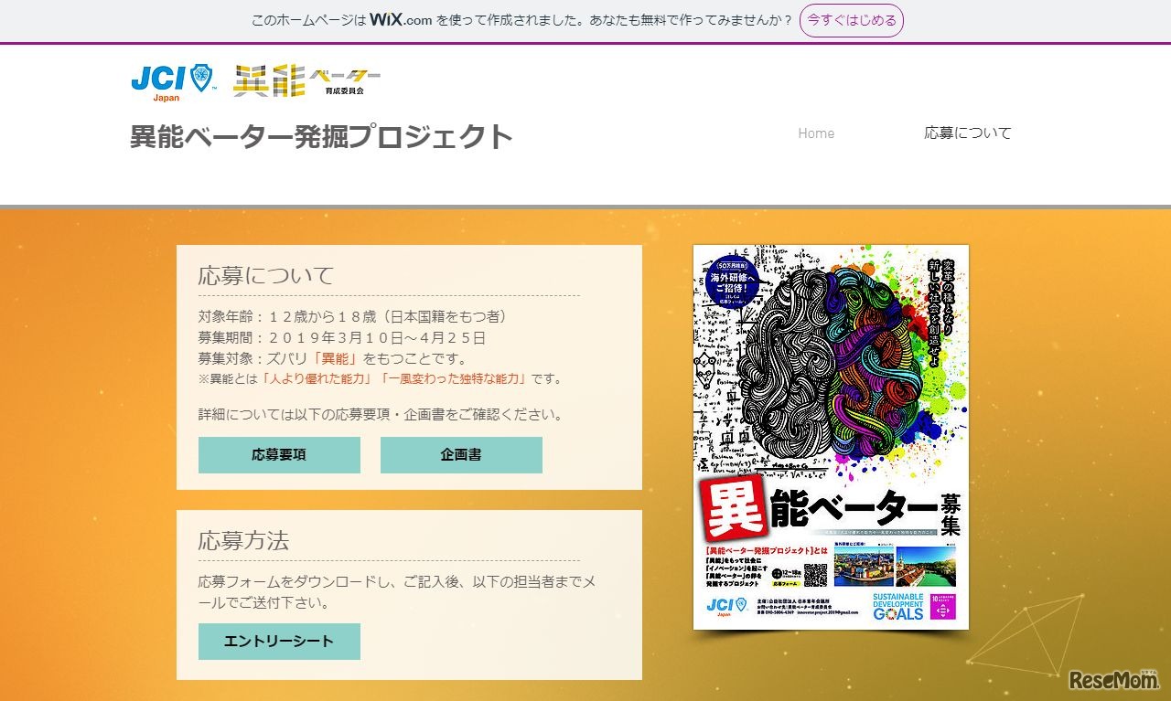 日本青年会議所(日本JC)の2019年度新規事業「異能ベーター発掘プロジェクト」では、12歳から18歳の「異能」をもつ子どもたちを募集している。最終選考を経て「異能ベーター」として認定された子どもたちには、日本JCが主催する海外研修へ無料で招待する。