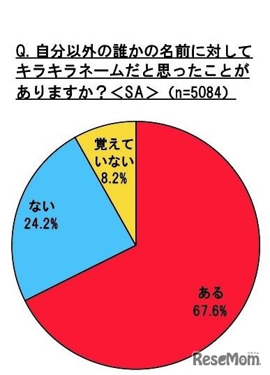 日常生活の中で自分以外の誰かをキラキラネームだと思ったことがある割合は約7割にのぼり、約半数の人はキラキラネームに嫌悪感がないことが、三起商行の調査結果より明らかになった。