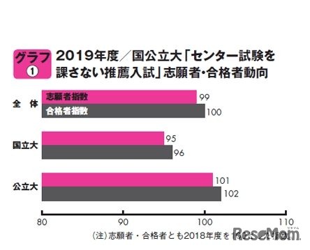 2019年度大学入試では、私立大公募推薦の志願者数が前年比18%増加したことが、旺文社教育情報センターの分析結果より明らかになった。一般入試の合格者絞り込みによる難化を極度に警戒した「超安全志向」が最大の要因だという。
