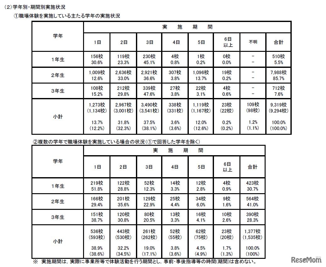 国立教育政策研究所は2019年(平成31年)3月19日、2017年度(平成29年度)における国公私立中学校・高校の職場体験・インターンシップ実施状況を公表した。実施率は、公立中学校が前年度比0.5ポイント増の98.6%、公立高校が前年度比1.1ポイント増の84.8%だった。