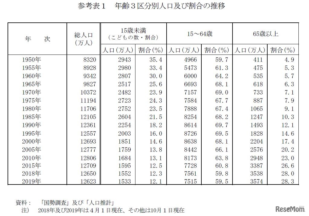 総務省は2019年5月4日、子どもの数(15歳未満人口)を公表した。子どもの数は1,533万人と38年連続で減少。子どもの割合も12.1%と45年連続の低下となり、いずれも過去最少を更新した。都道府県別で、子どもの数が前年より増加したのは東京都のみで、45道府県で減少した。