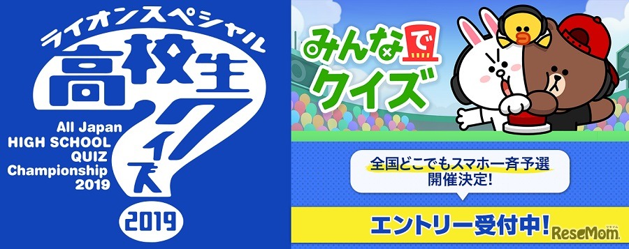 日本テレビが開催する「ライオンスペシャル 第39回全国高等学校クイズ選手権(高校生クイズ2019)」は、「LINEみんなでクイズ」を活用して高校生クイズ史上初となる「全国どこでもスマホ一斉予選」を実施する。予選は2019年7月26日。