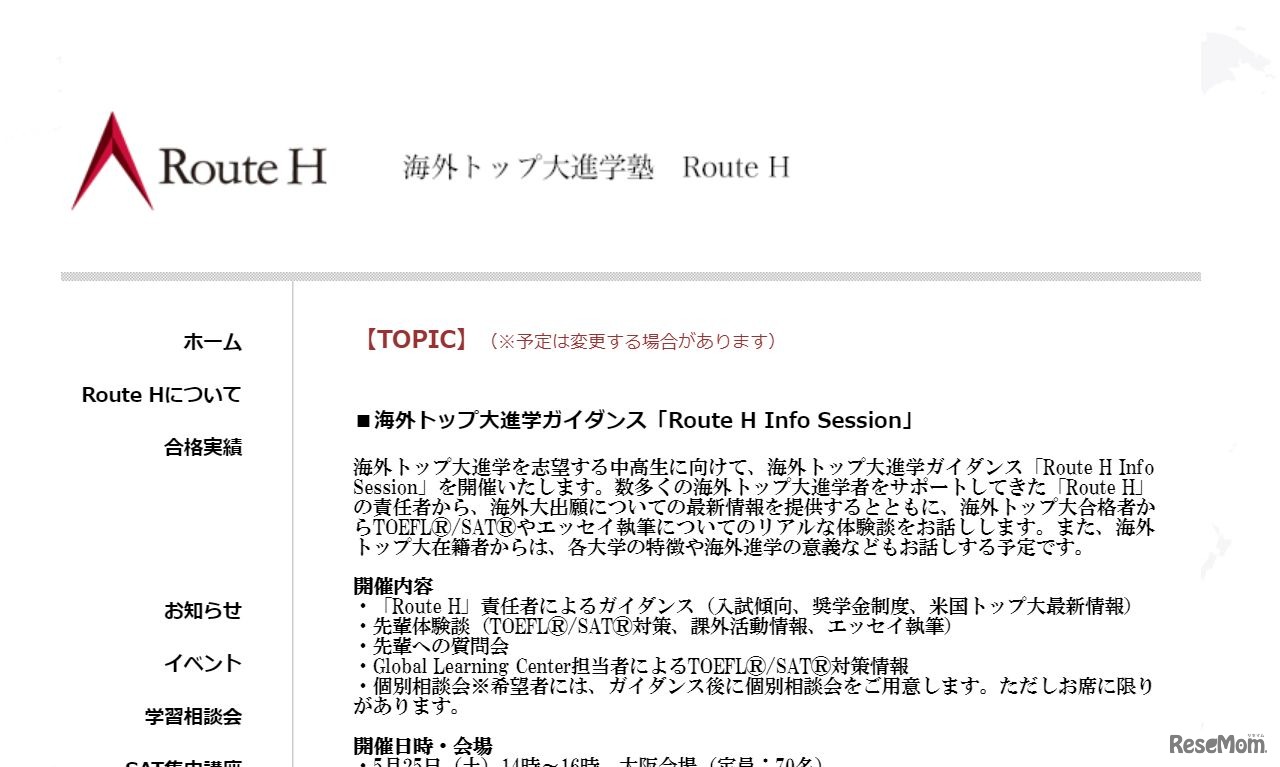 ベネッセコーポレーションが運営する海外トップ大進学塾「Route H」グループは2019年5月25日より、海外トップ大進学ガイダンス「Route H Info Session」を大阪、広島、東京、福岡、仙台にて順次開催する。参加無料。