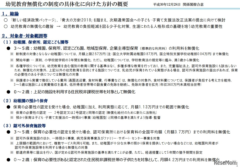 幼児教育無償化の対象者、対象範囲など