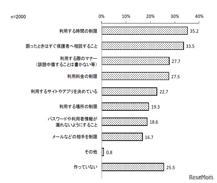 画像出典:東京都「家庭における青少年の携帯電話・スマートフォン等の利用等に関する調査結果報告書」概要版 家庭内ルールの有無と内容