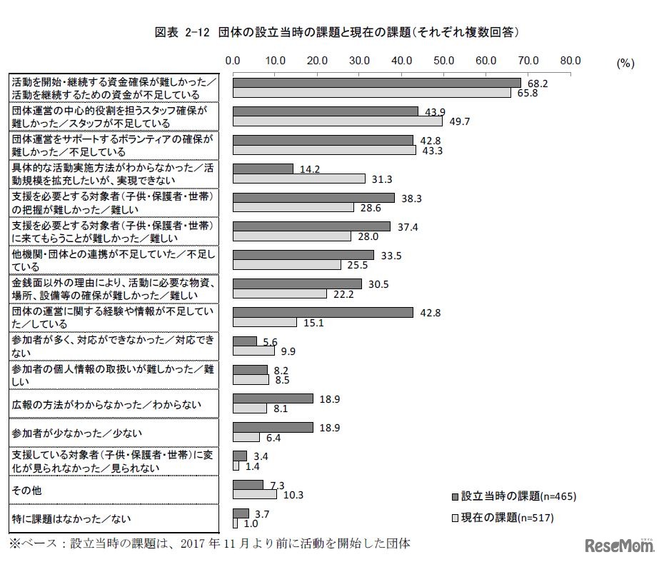子どもの貧困を支援する団体の6割以上が、資金不足の課題を抱えていることが2019年5月13日、内閣府の調査結果から明らかになった。1年間の事業費が100万円未満の団体が半数にのぼり、事業費の調達手段は「寄付」が7割を占めた。