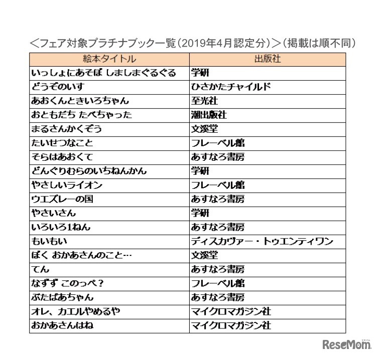 画像出典:絵本ナビ フェア対象プラチナブック一覧(2019年4月認定分)※フェア実施店舗により展開作品は異なる