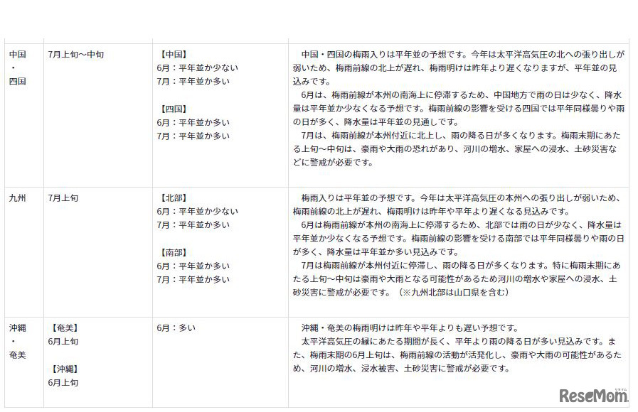 西・東日本の梅雨入りは平年並の予想…各地方で昨年よりも長い梅雨に 6枚目の写真・画像