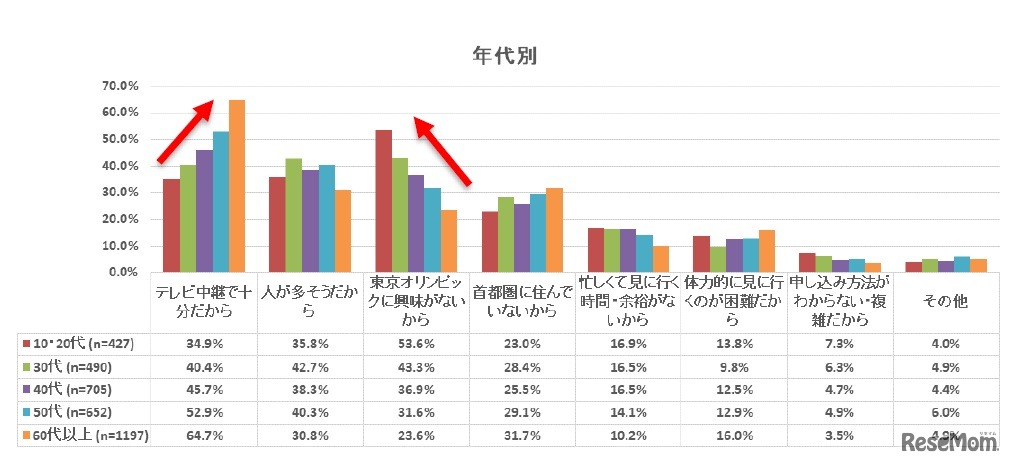 画像出典:ネオマーケティング 東京オリンピックを「会場で見たいと思わない」理由(年代別)