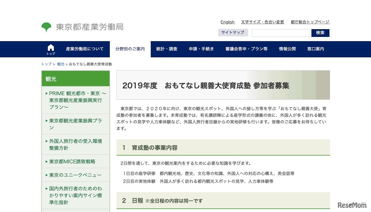 東京都は2020年に向け、中高生が東京の観光スポットや外国人への接し方などを学ぶ「おもてなし親善大使」育成塾の参加者を募集している。多摩地区で実施するA日程と、23区で実施するB日程の2コースで計100名を募集。受講料は無料。応募締切は2019年6月30日(消印有効)。