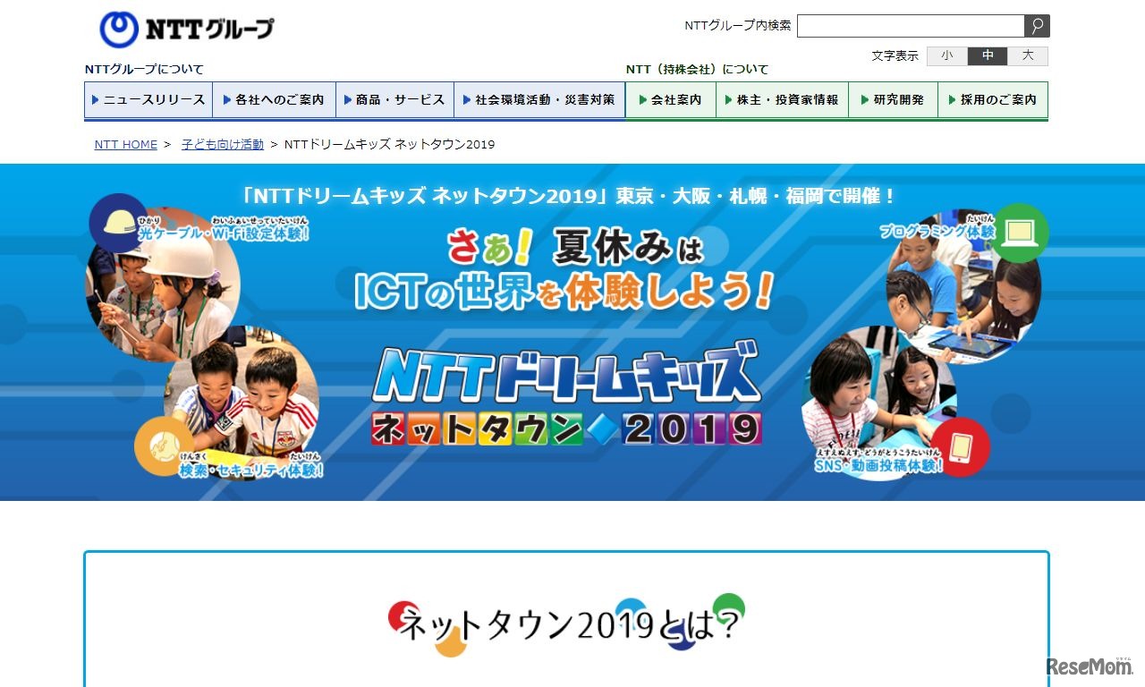 NTTグループは2019年7月から8月にかけて、小学3年生から6年生を対象とした体験型学習イベント「NTTドリームキッズネットタウン2019」を東京、札幌、大阪、福岡の4会場で開催する。