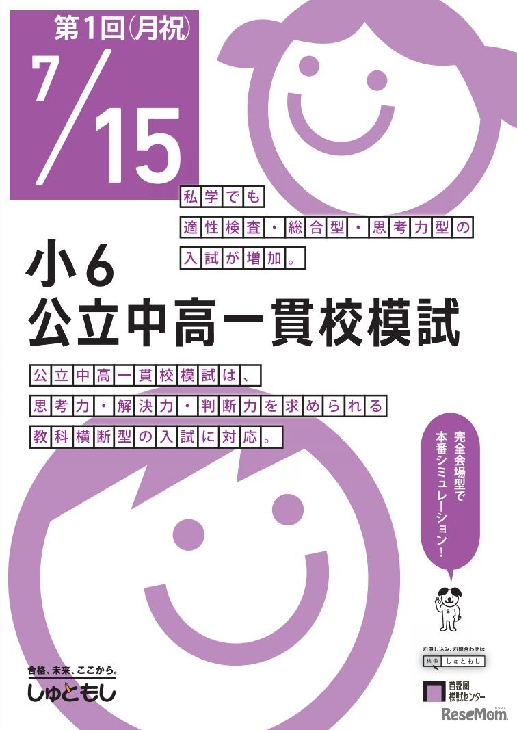 首都圏模試センターは2019年7月7日に「小6第2回・小5第1回統一合判」、7月15日に「小6第1回公立中高一貫校模試」を開催する。参加費は6年生対象模試が5,400円、5年生対象模試が4,860円(いずれも税込)。