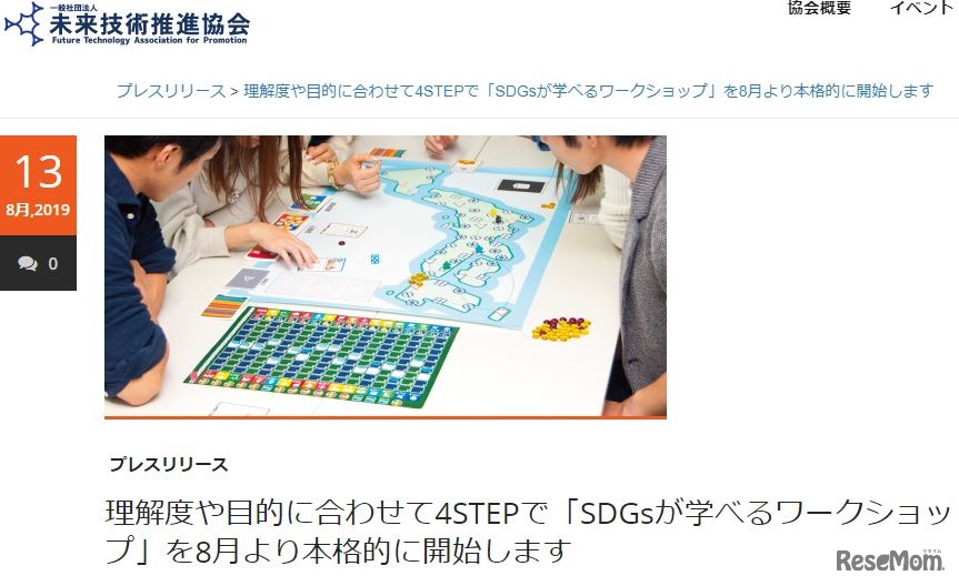 未来技術推進協会は2019年8月より、構成をリニューアルした「SDGsが学べるワークショップ」の提供を本格的に開始する。参加者の理解度や目的に合わせて4つのステップから選んで学ぶことができるようになった。