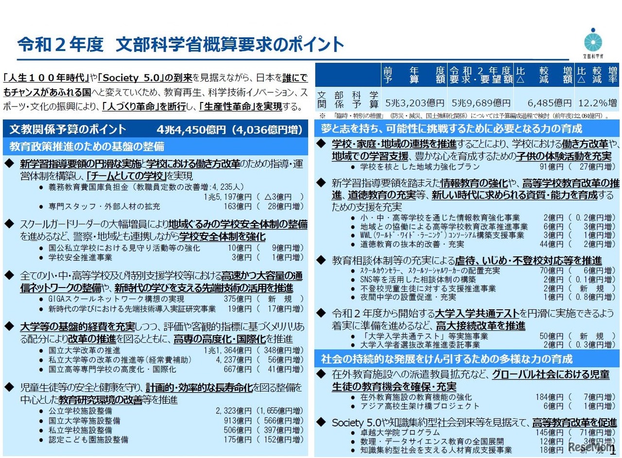 画像出典:文部科学省「令和2年度(2020年度)概算要求のポイント」 2020年度文部科学省概算要求のポイント