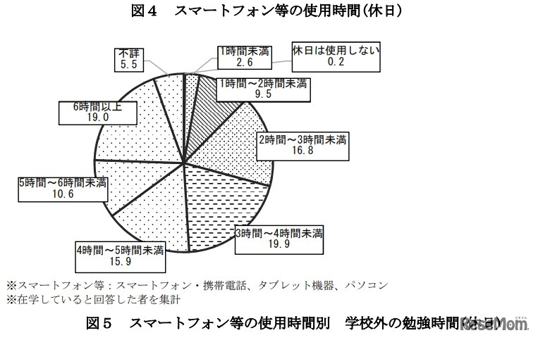 画像出典:文部科学省 スマートフォンなどの使用時間(休日)