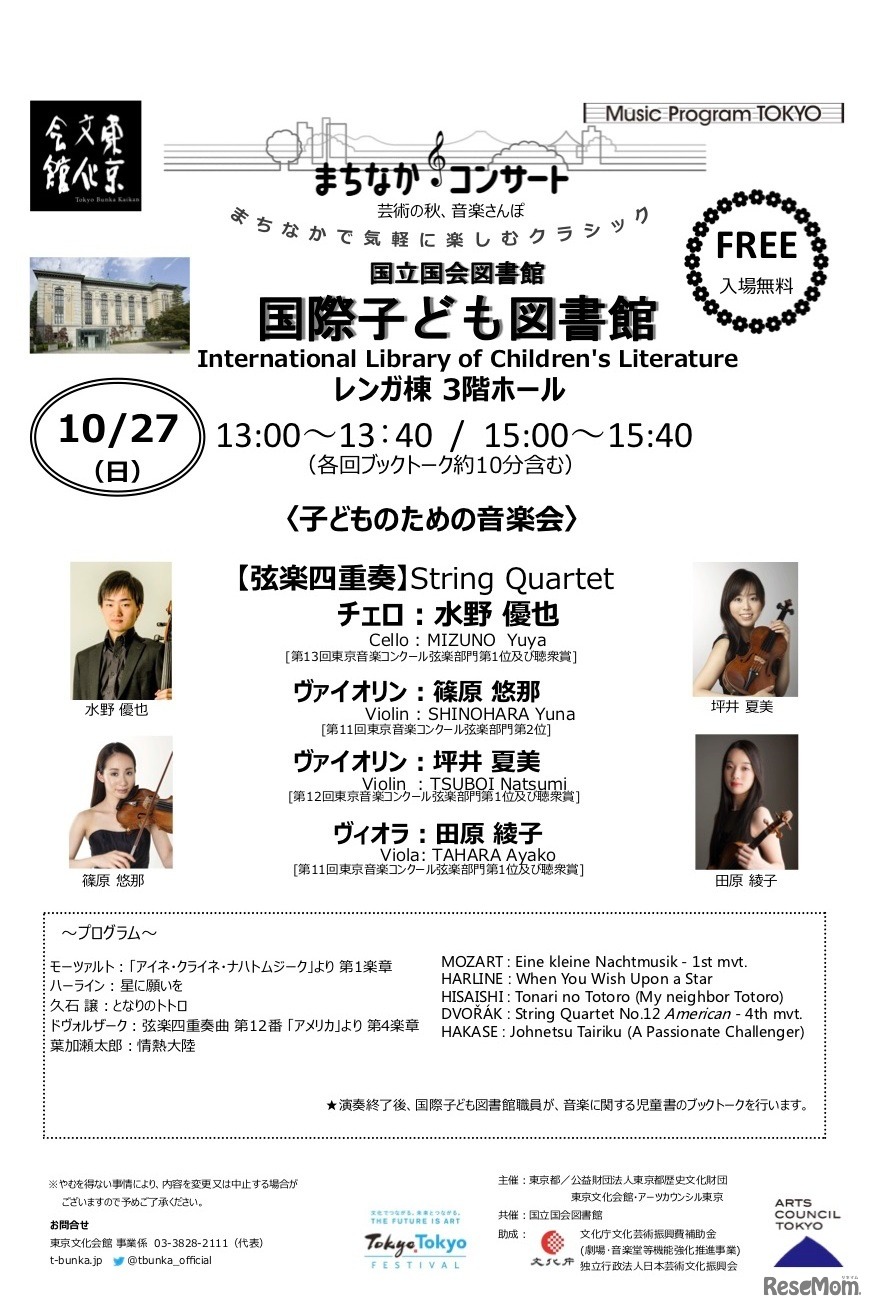 国際子ども図書館は2019年10月27日、東京文化会館との共催による音楽イベント「子どものための音楽会」を開催する。午後1時からと午後3時からの1日2回開催。参加無料、事前申込み不要。対象は3歳以上で、当日先着順で各回100名程度を募集する。