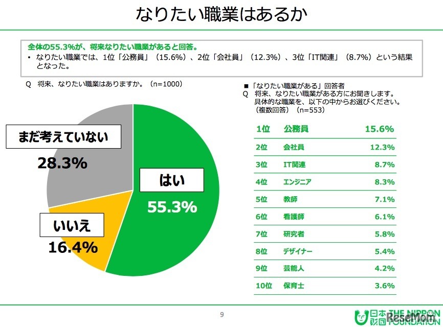 画像出典:日本財団「18歳意識調査」 なりたい職業はあるか